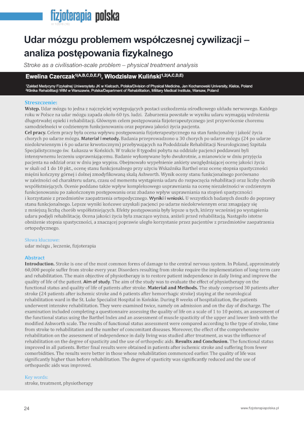E. Czerczak, W. Kuliński – Stroke as a civilisation-scale problem – physical treatment analysis. FP 2016; 16(1); 24-35